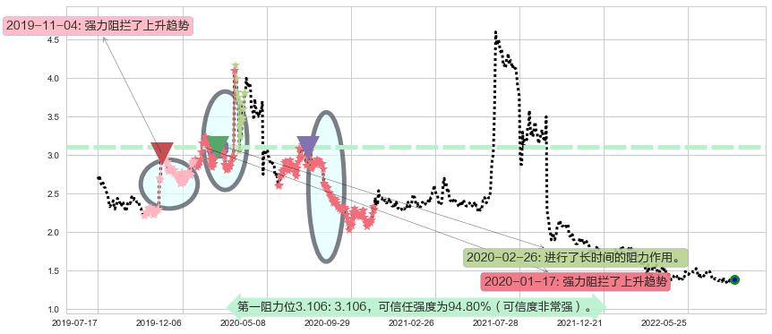 ♞ 第一阻力位3.106价格为3.106,其通过量化计算出的可信任强度为94.80%(可信度非常强)。