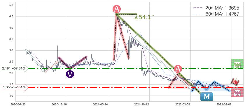 ♘ 阻力价格位2.191,可信任强度76.29%,距离最后交易2022-08-12形成的收盘价格1.3900相差 +57.61%