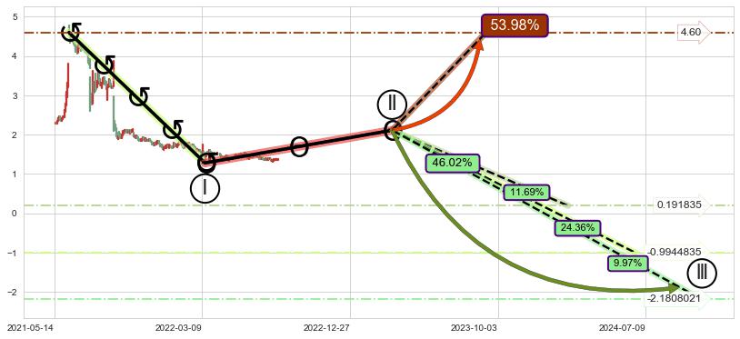➢ 循环浪继续向下【最低】位置(2024-10-22, -2.1808021),匹配聚类样本比例21.66%, 可能性概率9.97%