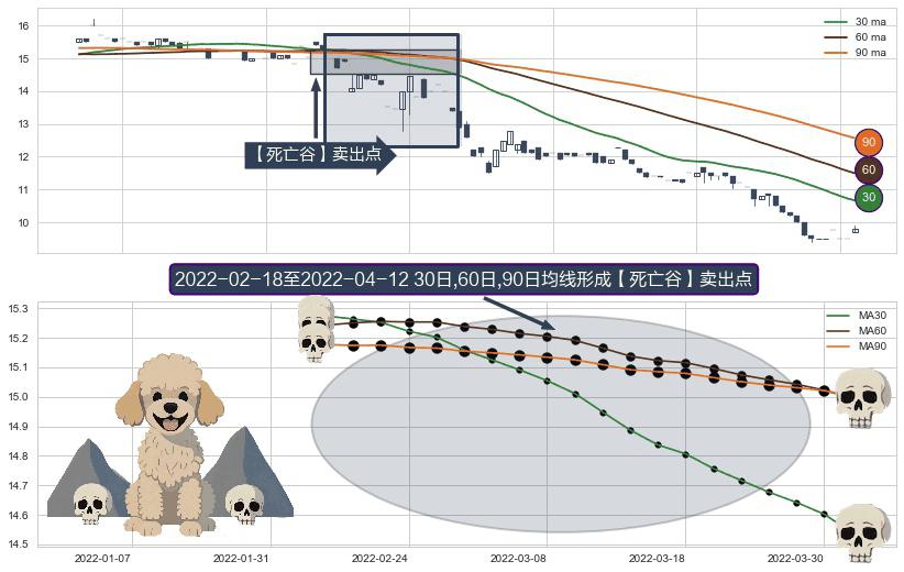 ⚀ 2022-02-23-日至2022-04-12-日显现 30日-60日-90日均线 【死亡谷】卖出点 看空信号,后市看跌,卖出