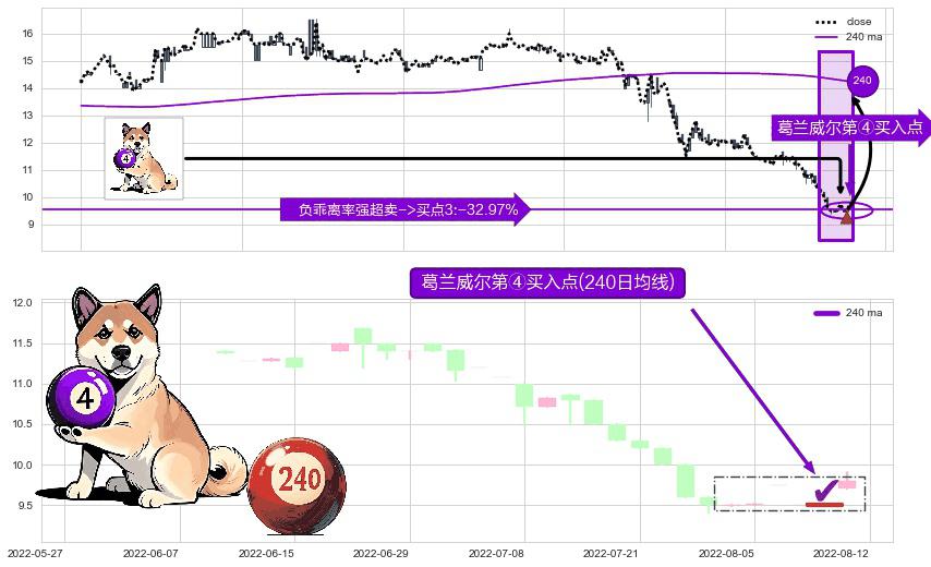⚀ 2022-08-11-日显现 葛兰威尔均线 240日均线 第④买入点 下降趋势均值回复的短线反弹信号,后市看涨,买进信号