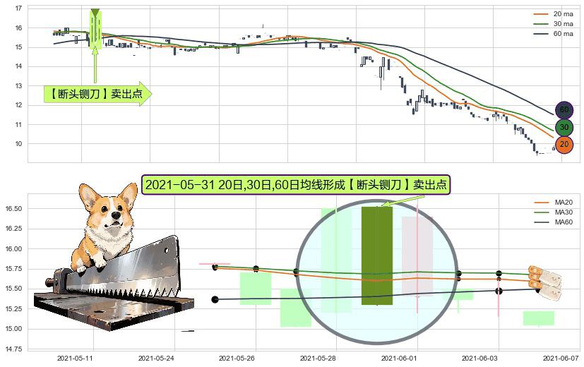 ⚀ 2021-05-31日显现 20日-30日-60日均线 【断头铡刀】卖出点 看空信号,后市看跌,卖出