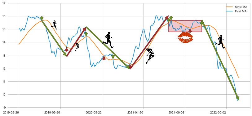 2021-12-20至2022-08-12 慢线与快线呈空头排列, 慢线与快线接触少,无缠绕