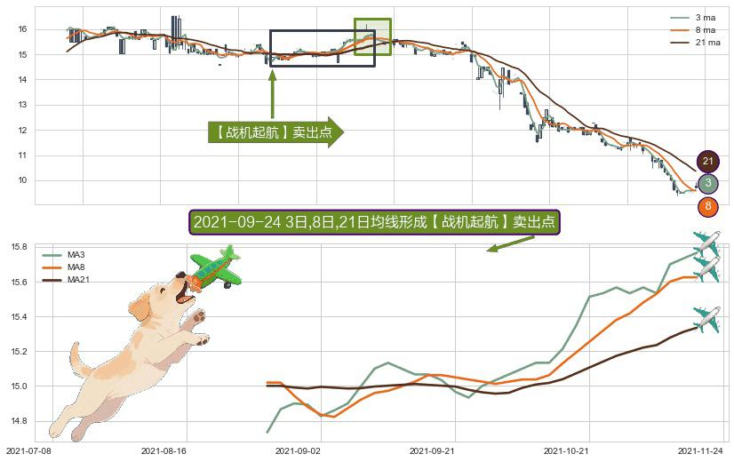 ⚀ 2021-08-27日-2021-11-19日显现 3日-8日-21日均线 【战机起航】卖出点 看空信号,后市看跌,卖出