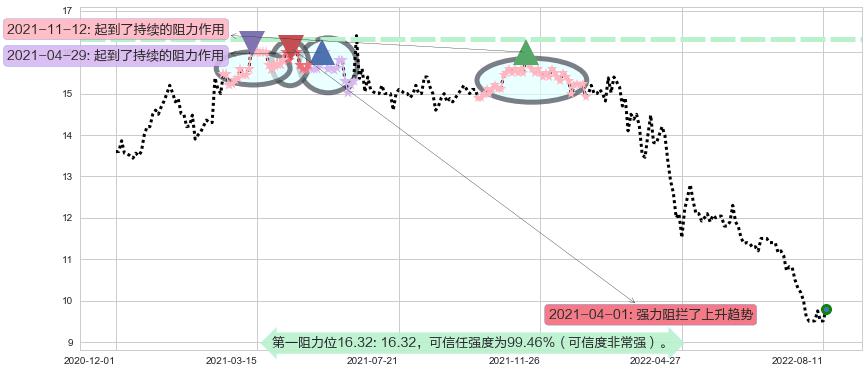 ♘ 阻力价格位16.32,可信任强度99.46%,距离最后交易2022-08-12形成的收盘价格9.80相差 +66.56%