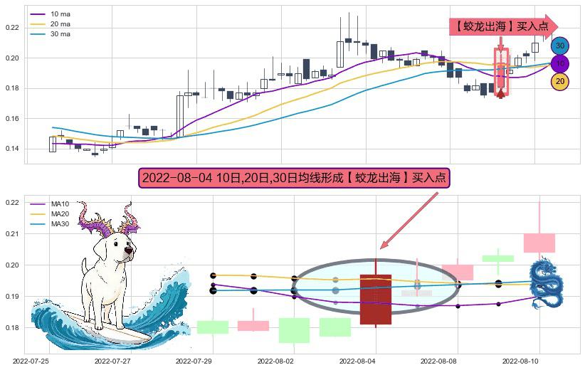 ⚀ 2022-08-04日显现 10日-20日-30日均线 【蛟龙出海】买入点 看多信号,后市看涨,买入
