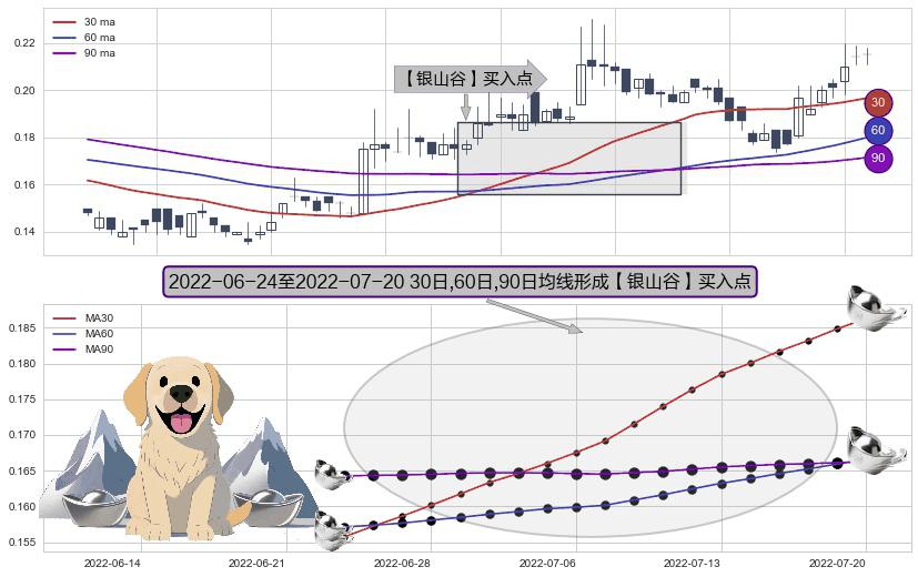 ⚀ 2022-06-27-日至2022-07-20-日显现 30日-60日-90日均线 【银山谷】买入点 看多信号,后市看涨,买入