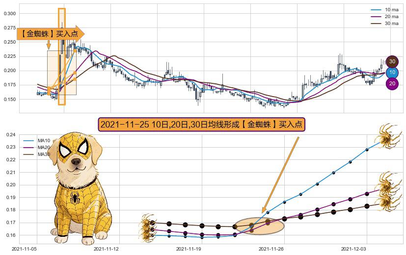 ⚀ 2021-11-25日显现 10日-20日-30日均线 【金蜘蛛】买入点 看多信号,后市看涨,买入
