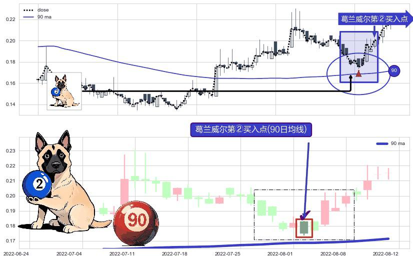 ⚀ 2022-08-02-日显现 葛兰威尔均线 90日均线 第②买入点 上升趋势的中继信号,后市看涨,买进信号