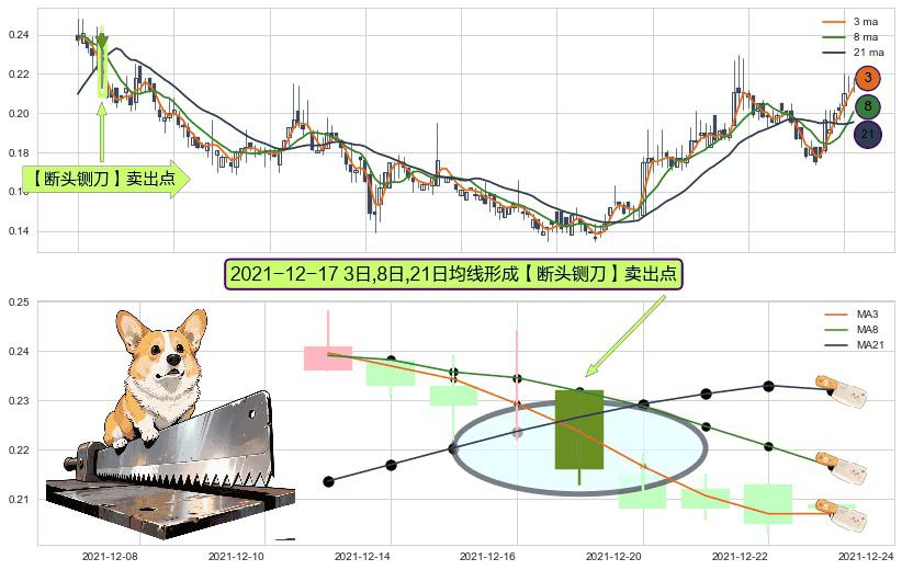 ⚀ 2021-12-17日显现 3日-8日-21日均线 【断头铡刀】卖出点 看空信号,后市看跌,卖出