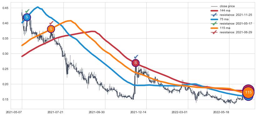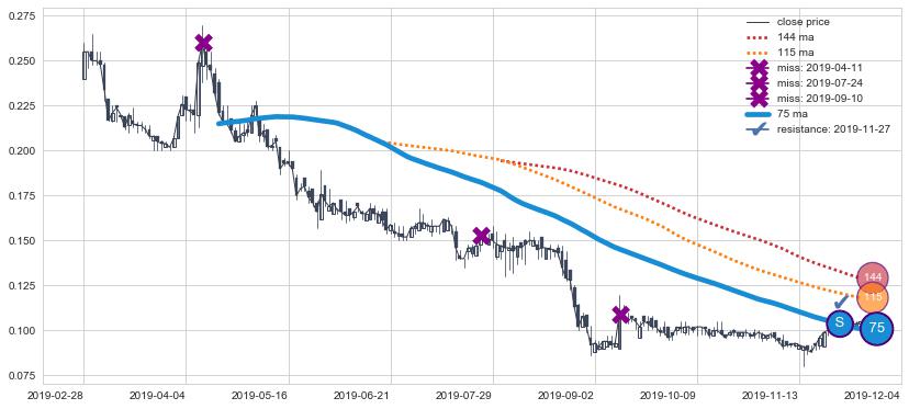 ⚁ MA3和MA8走势平行,且始终保持在短距离内,MA21始终在短中期均线下方,与短中期均线保持一定的距离,微微上行