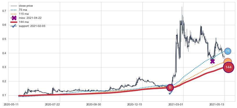 ⚄ 价格在均线获取支撑后再次向上反弹了【较短】距离, 第②买入点 支撑效果【仍需验证】