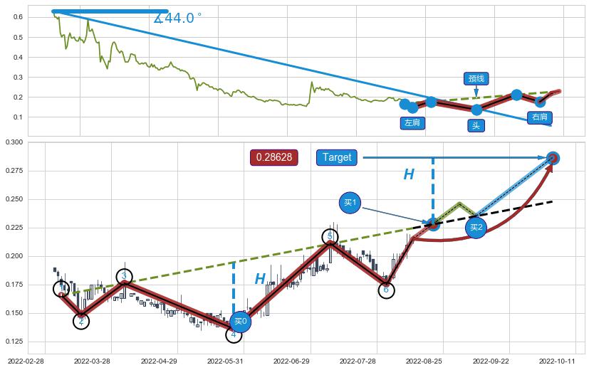 ➢ 【买0】下跌趋势线在→(2022-05-30: 0.138424 )被突破,反转趋势形成
