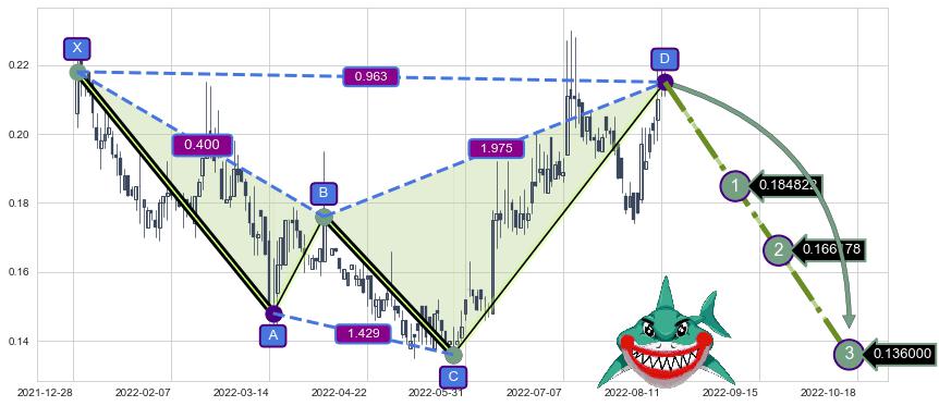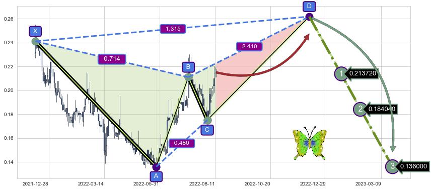 ➣ 未完成【蝴蝶】形态起点X: 2021-12-09, 已到达C点: 2022-08-02, 预测最终D点: 2022-12-08, 共248交易日