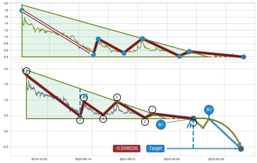 ➣ 【未确认突破,预测即将形成突破】下降三角形整理起点:2019-06-06, 预测突破点:2022-08-12,形态共755交易日