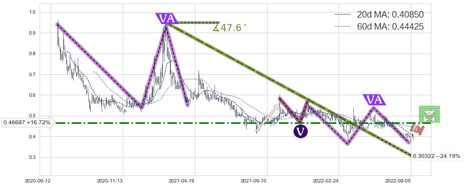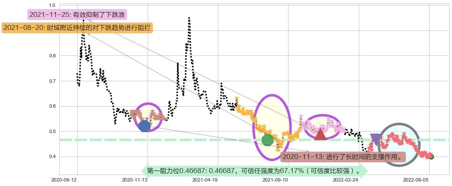 ♘ 阻力价格位0.46687,可信任强度67.17%,距离最后交易2022-08-12形成的收盘价格0.40000相差 +16.72%