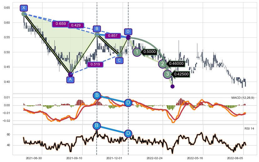 ➢ 谐波价格D点比B点高 ⤴,【MACD】指标D点比B点低 ⤵️