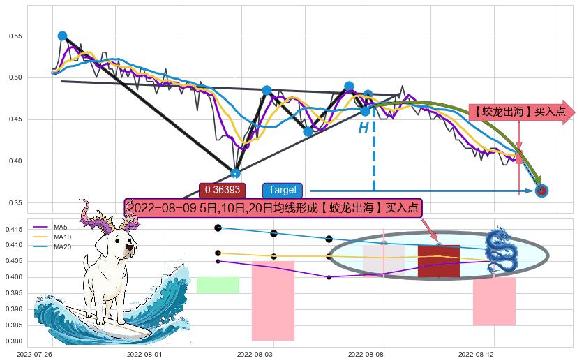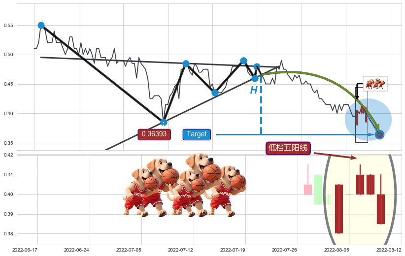 ➢ AI智能【预测第一最小【整理】目标价格】: 突破后1𝐇→(2022-08-22: 0.36393 )