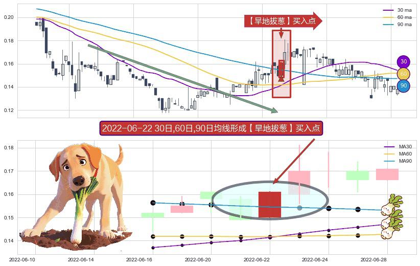 ⚀ 2022-06-22日显现 30日-60日-90日均线 【旱地拔葱】买入点 看多信号,后市看涨,买入