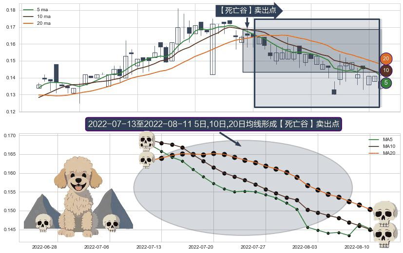 ⚀ 2022-07-14-日至2022-08-11-日显现 5日-10日-20日均线 【死亡谷】卖出点 看空信号,后市看跌,卖出