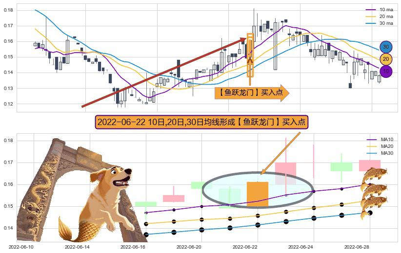 ⚀ 2022-06-22日显现 10日-20日-30日均线 【鱼跃龙门】买入点 看多信号,后市看涨,买入