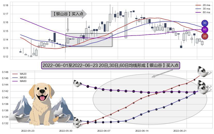 ⚀ 2022-06-02-日至2022-06-23-日显现 20日-30日-60日均线 【银山谷】买入点 看多信号,后市看涨,买入
