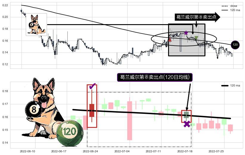 ⚀ 2022-07-15-日显现 葛兰威尔均线 120日均线 第⑧卖出点 下降趋势的中继信号,后市看跌,卖出信号