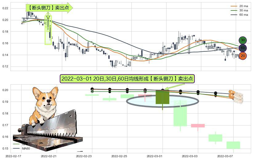 ⚀ 2022-03-01日显现 20日-30日-60日均线 【断头铡刀】卖出点 看空信号,后市看跌,卖出