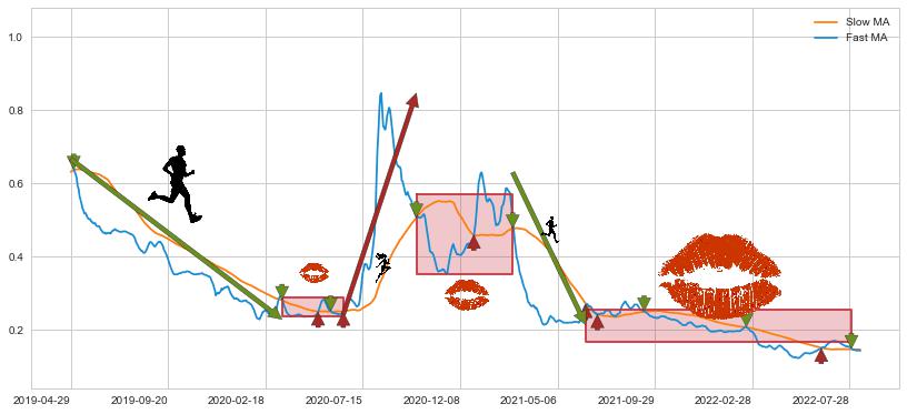 2021-06-18至2022-08-01 慢线与快线多次接触,存在上下穿越,有缠绕