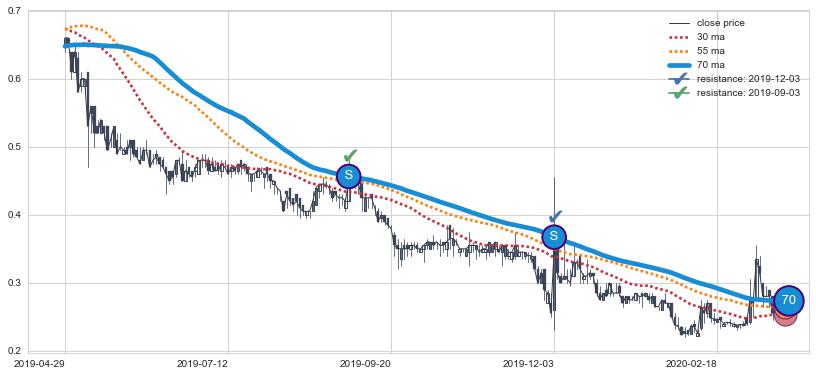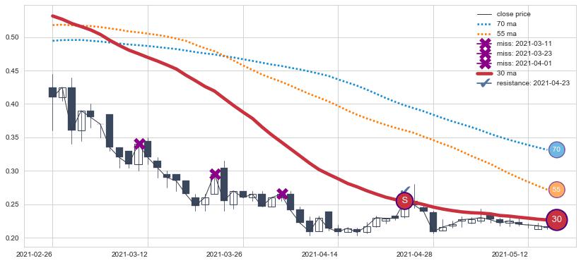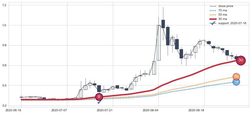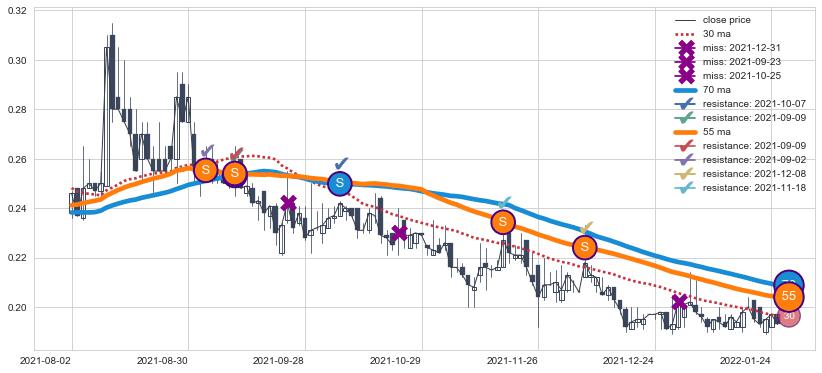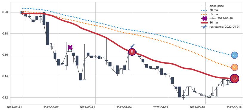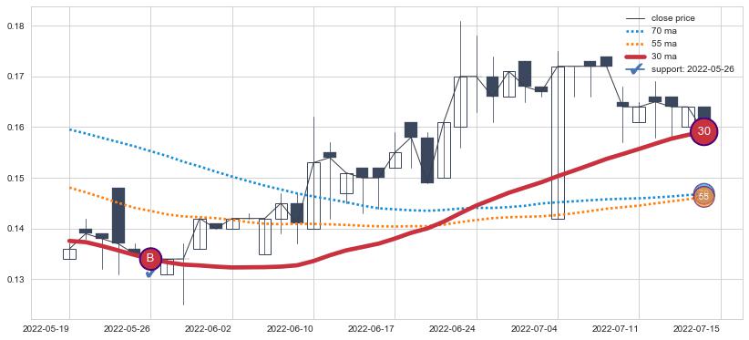 ⚂ 2022-06-23-日均线向上突破,2022-07-15-日重新下穿均线破位,均线阻力再次生效