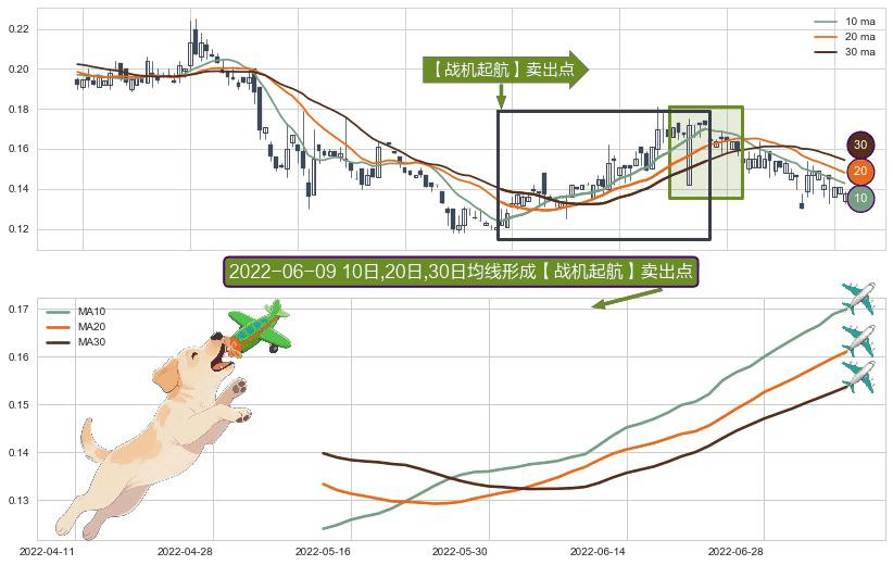 ⚀ 2022-05-12日-2022-07-07日显现 10日-20日-30日均线 【战机起航】卖出点 看空信号,后市看跌,卖出