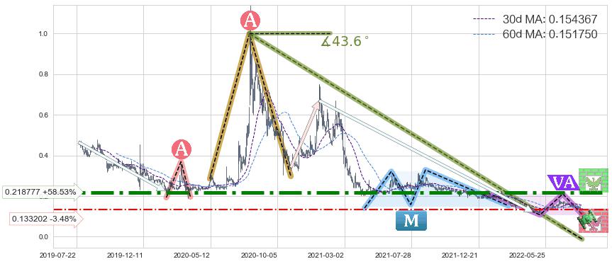 ♘ 阻力价格位0.218777,可信任强度88.47%,距离最后交易2022-08-12形成的收盘价格0.138000相差 +58.53%