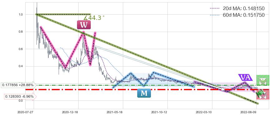 ♘ 阻力价格位0.177856,可信任强度54.79%,距离最后交易2022-08-12形成的收盘价格0.138000相差 +28.88%