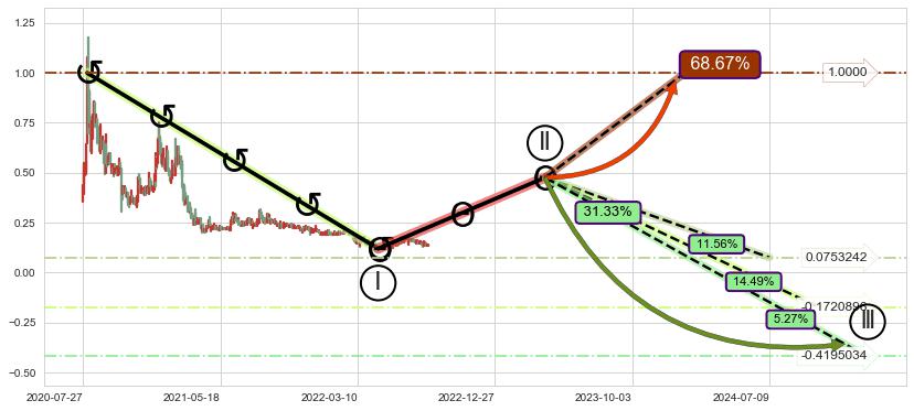 ➣ 循环浪继续向下【平均值】位置(2024-10-16, -0.1720896),匹配聚类样本比例46.27%, 可能性概率14.49%