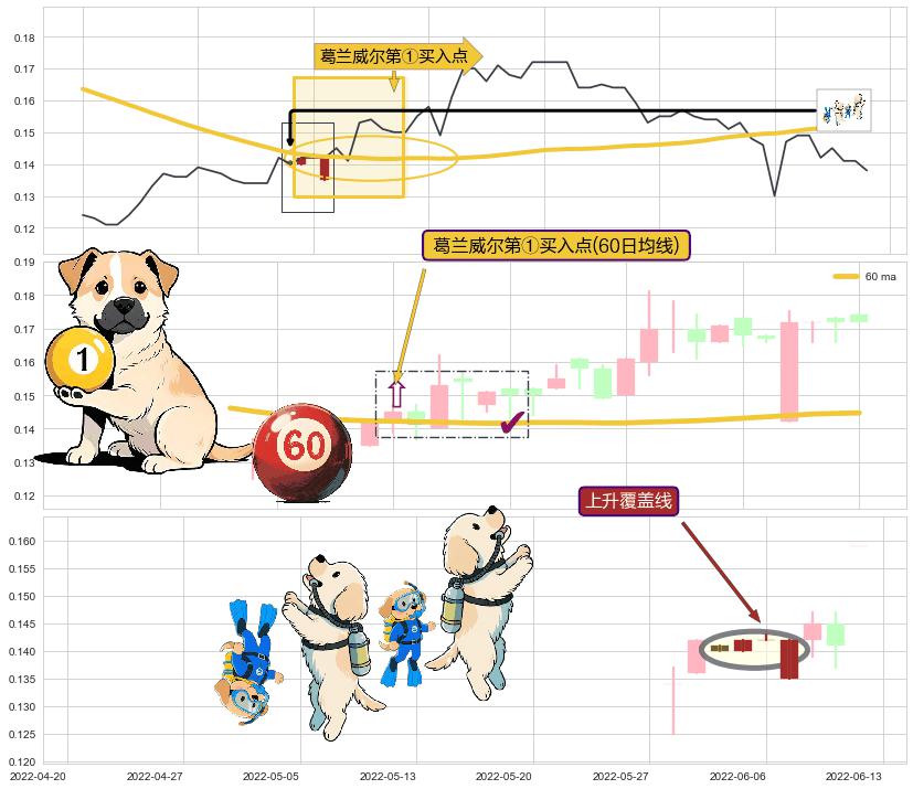 ➢ 低点影线(2022-05-17: 0.130000 )→回踩→第二根k线低点(2022-05-16: 0.131000 )