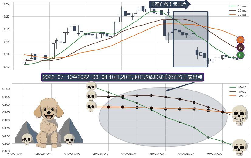 形态多维评估: ⚀ 2022-07-20-日至2022-08-01-日显现 10日-20日-30日均线 【死亡谷】卖出点 看空信号,后市看跌,卖出