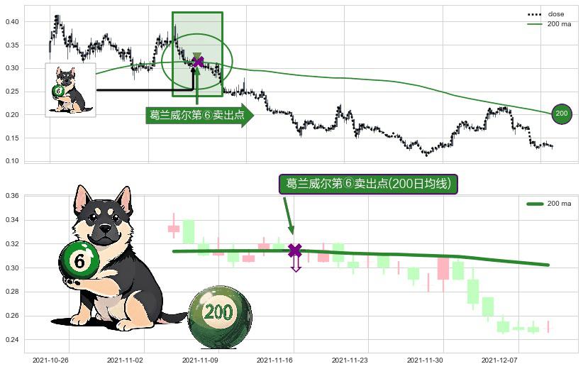 形态多维评估: ⚀ 2021-11-16-日显现 葛兰威尔均线 200日均线 第⑥卖出点 走势反转见顶信号,后市看跌,卖出信号