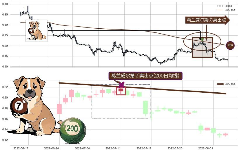 形态多维评估: ⚀ 2022-07-11-日显现 葛兰威尔均线 200日均线 第⑦卖出点 下降趋势的中继信号,后市看跌,卖出信号