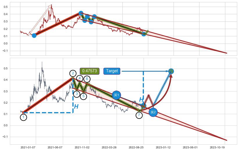 ➢ 最小中继整理涨幅→𝐇: 0.30400 (𝐇楔型旗杆的长度:楔型起点→顶点)