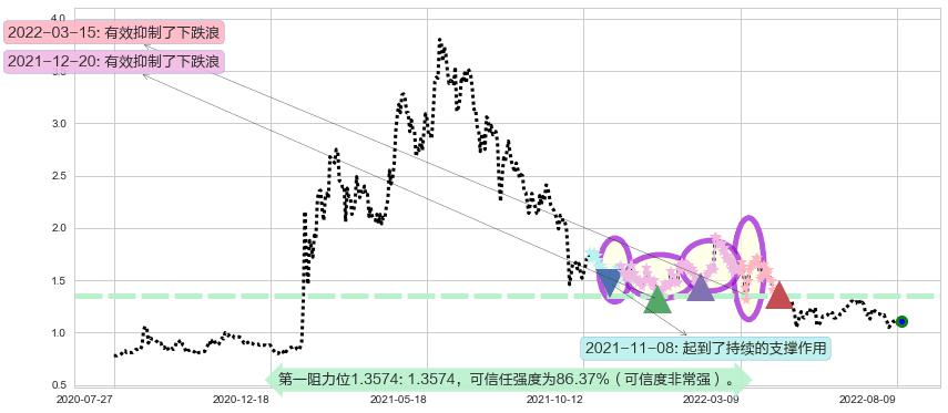 ♘ 阻力价格位1.3574,可信任强度86.37%,距离最后交易2022-08-12形成的收盘价格1.1100相差 +22.29%