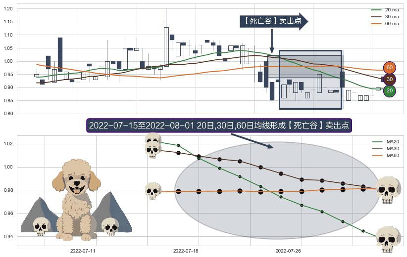 ⚀ 2022-07-18-日至2022-08-01-日显现 20日-30日-60日均线 【死亡谷】卖出点 看空信号,后市看跌,卖出