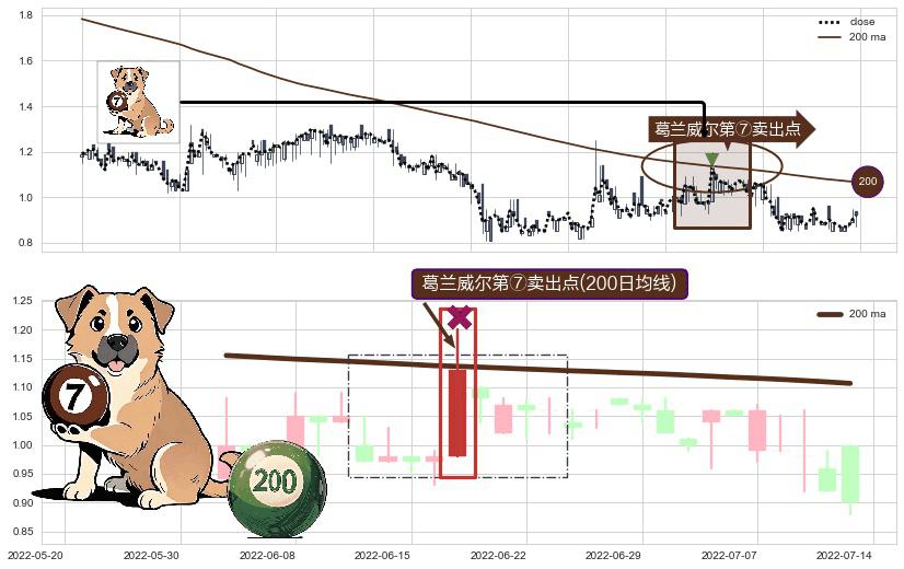 ⚀ 2022-06-17-日显现 葛兰威尔均线 200日均线 第⑦卖出点 下降趋势的中继信号,后市看跌,卖出信号