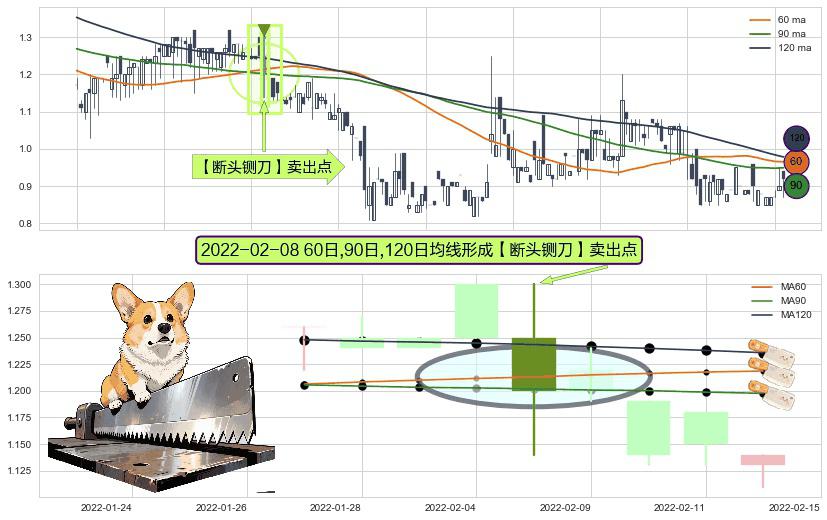 ⚀ 2022-02-08日显现 60日-90日-120日均线 【断头铡刀】卖出点 看空信号,后市看跌,卖出