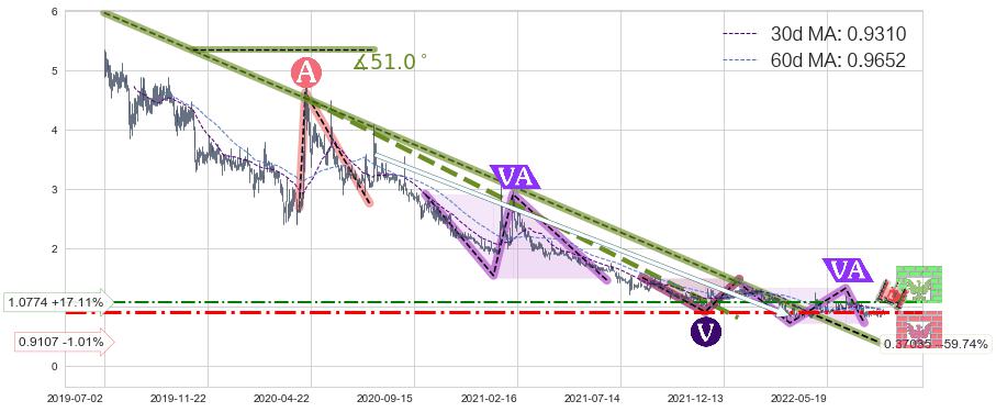 ♘ 阻力价格位1.0774,可信任强度51.48%,距离最后交易2022-08-12形成的收盘价格0.9200相差 +17.11%