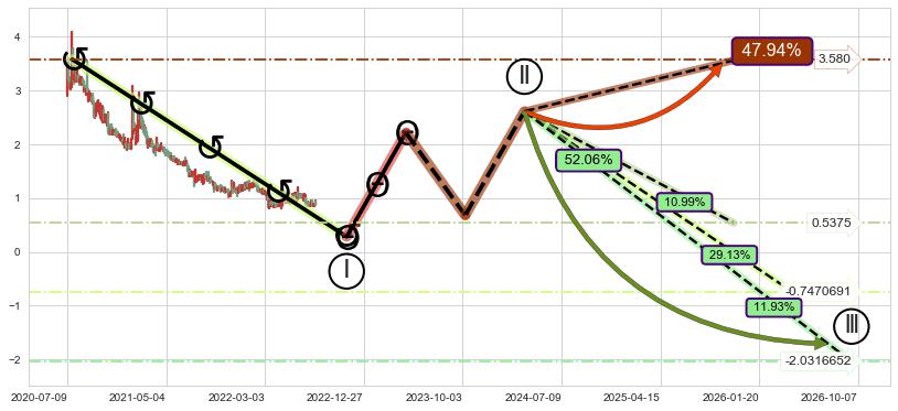 ➣ 大趋势循环浪继续向下概率52.06%