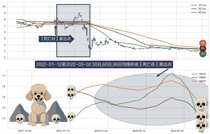 形态多维评估: ⚀ 2022-01-13-日至2022-03-02-日显现 30日-60日-90日均线 【死亡谷】卖出点 看空信号,后市看跌,卖出
