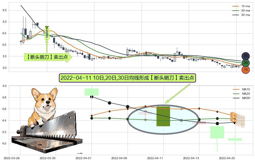 形态多维评估: ⚀ 2022-04-11日显现 10日-20日-30日均线 【断头铡刀】卖出点 看空信号,后市看跌,卖出