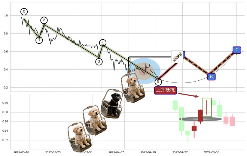 | 7 🅚:早晨之星(黎明之星) ➕ 🌊:波浪理论猜想下跌浪5已形成,猜想后续形成abc反弹上涨(均值回复) ☞ 看多信号 ⇥ 【🅚线】交织【图形】⇥ 综合量化分数: 54 | > |