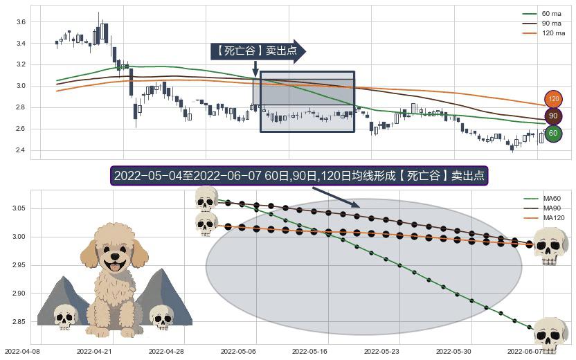 形态多维评估: ⚀ 2022-05-05-日至2022-06-07-日显现 60日-90日-120日均线 【死亡谷】卖出点 看空信号,后市看跌,卖出
