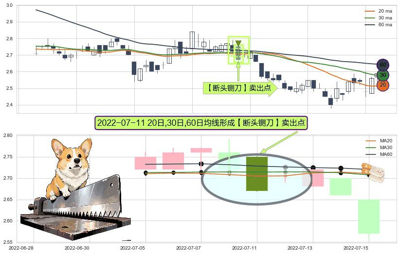 形态多维评估: ⚀ 2022-07-11日显现 20日-30日-60日均线 【断头铡刀】卖出点 看空信号,后市看跌,卖出